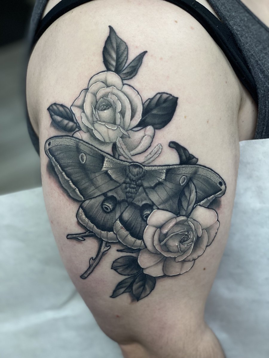 Today Paul Came In On Short Notice And Got The Snaggletooth Motorhead Logo Next To My Lemmyportrait From Black And Grey Tattoos Realism Tattoo Music Tattoo